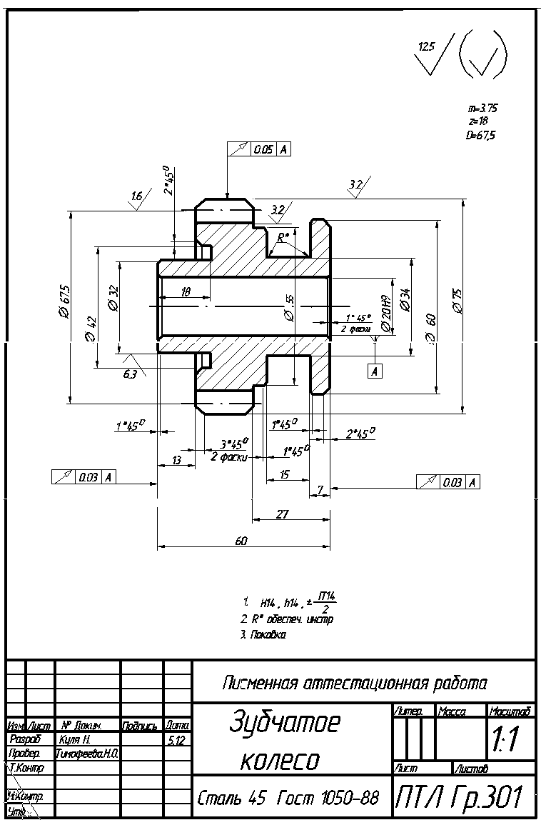 Тема: «Технологическая карта механической обработки зубчатого колеса».