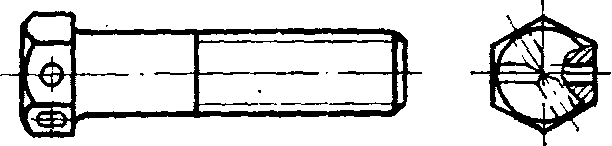 Болты с шестигранной головкой изготовляются в нескольких исполнениях: основное (рис. 1,а) (без отверстий или углублений), с отверстиями в стержне или головке (рис. 1,6, в) или с углублением в головке '(рис. 1, г, д). Болты с отверстиями в головке или в стержне применяются в соединениях, требующих предохранения от самоотвинчивания. Стопорение осуществляется с помощью шплинтов (проволоки), вставляемых в отверстие, просверленное в стержне или головке болта. Углубление в головке выполняется для облегчения оформления шестигранника в процессе безотходной высадки головки.