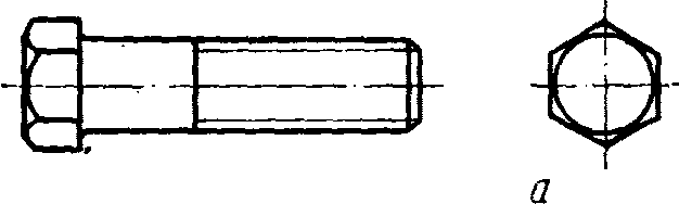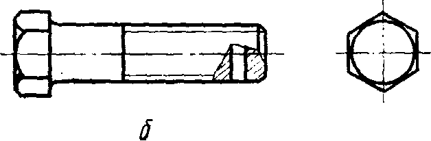 б) болты с диаметром гладкой части стержня, приблизительно равным среднему диаметру резьбы (ГОСТ 7795—70, ГОСТ 7811— 70, ГОСТ 15590—70). Эти болты для улучшения центрирования стержня в отверстии скрепляемых деталей имеют направляющий подголовок длиной не менее половины диаметра.