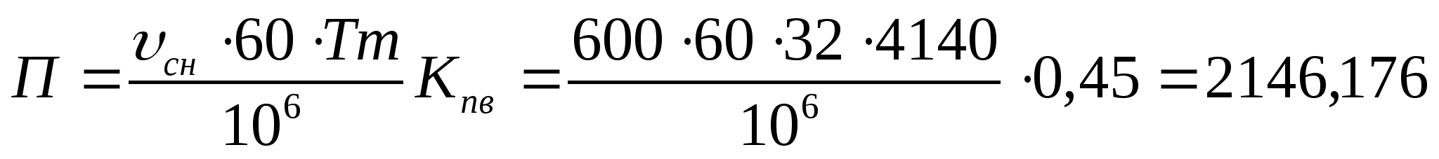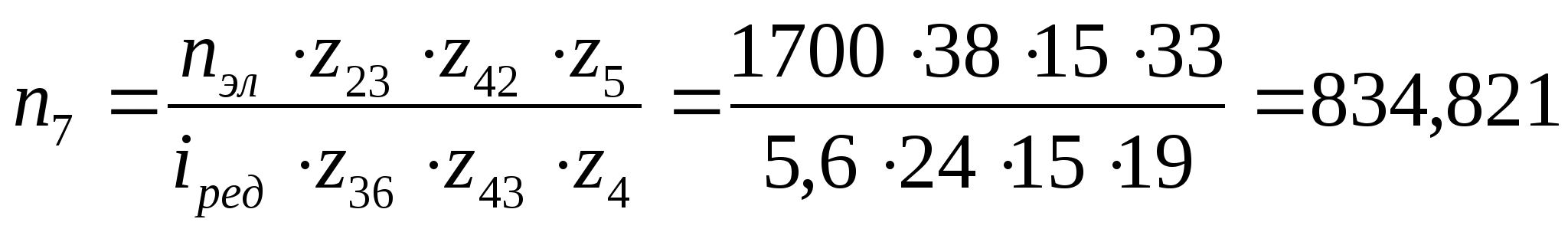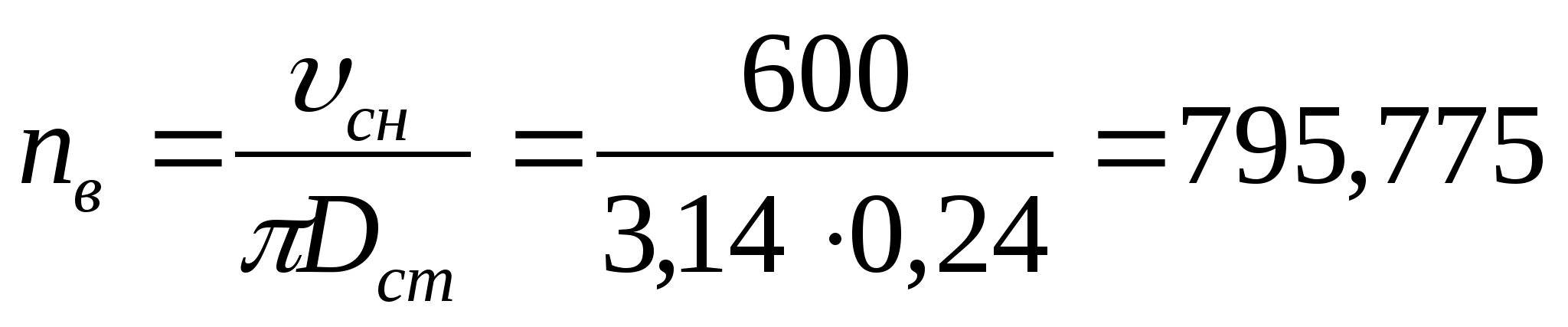 Расчёт частоты вращения (об/мин) и линейной скорости (м/мин) выпускного вала: