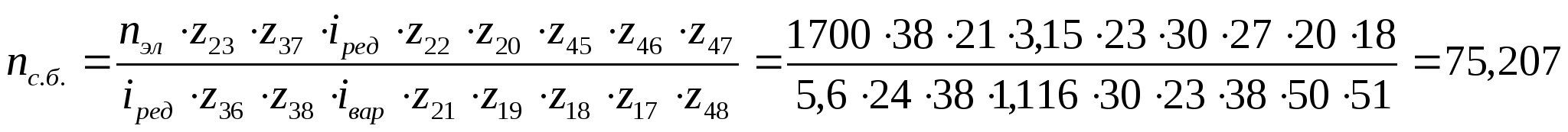 По кинематической схеме машины МШБ-9/140 сделан расчёт при частоте вращения вала электродвигателя 1700 об/мин и при передаточном числе передаточных механизмов 1,116 и 3,15.