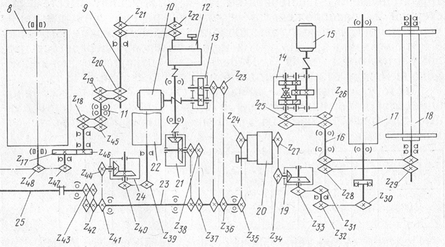 Кинематическая схема шлихтовальной машины МШБ-9/140