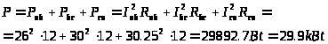 P=P>a>+P>b>+P>c>=0+3872+9680=13 552 Вт