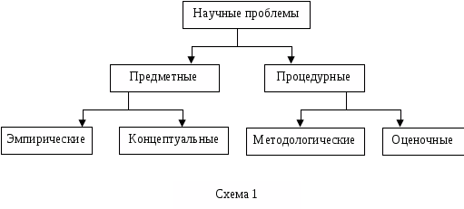 Научные проблемы могут быть классифицированы на различны подклассы. Приведем классификацию В.Н.Карповича [7], которая наглядно представлена на схеме 1.