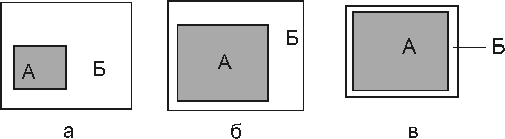 А — обученность; Б — образованность; пространство между А и Б — гуманитарные знания; А входит в Б. |