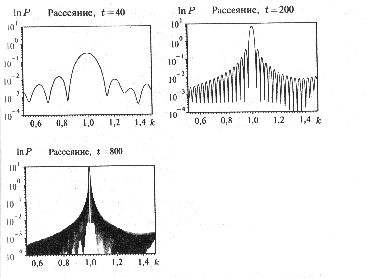 Полученные заключения могут быть подтверждены моделированием вероятности Р как функции от k при возрастающих значениях t. Графики приведены на рис.5[5, 241].