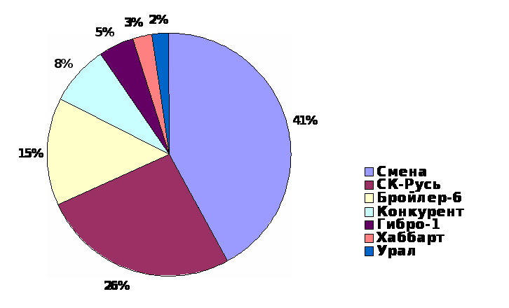Ниже, на диаграмме 1., представлены мясные кроссы, используемые на Кубани.