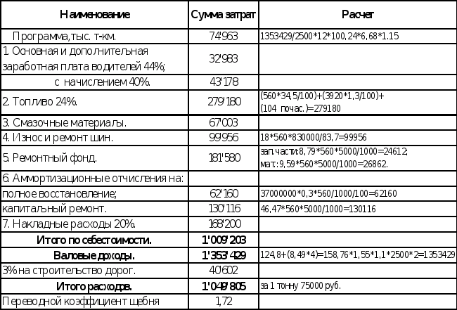 Расчет себестоимости перевозок осуществляется на основании действующего положения о составе затрат.