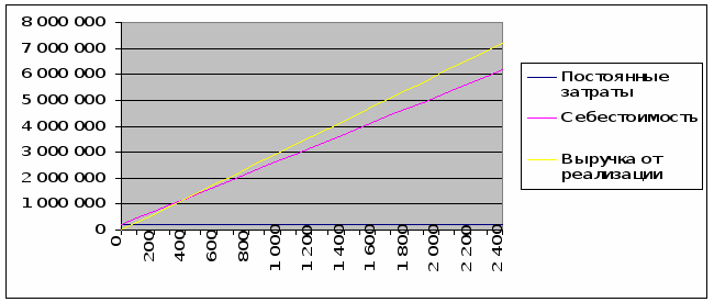 На любом успешно функционирующем предприятии наступает момент самоокупаемости производства. В процессе производственного цикла и цикла обращения, происходит накопление затрат. По завершению накопления затрат наступает момент реализации продукции и текущей самоокупаемости производства. После реализации продукции, из всей выручки, вычесть общие затраты прибыли производства, то остатке будет прибыль полученная от этого производства. Наглядно это можно представит виде графика (рис.1).