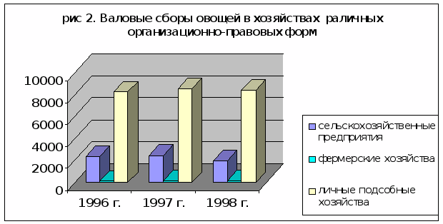 В связи с финансово-экономическим кризисом во втором полугодии 1998 года увеличилась реализация овощей открытого грунта (капуста, морковь, свекла, лук репчатый) по сравнению с этим же периодом 1997 года. Реализация же овощей защищенного грунта в межсезонье ниже, чем в 1997 году.
