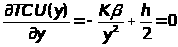 Пусть К – затраты на оформление заказа, имеющие место всякий раз при его размещении и предположении, что затраты на хранение единицы заказа в единицу времени равны h следовательно, суммарные затраты в единицу времени TCU(y) как функцию от у можно представить в виде: