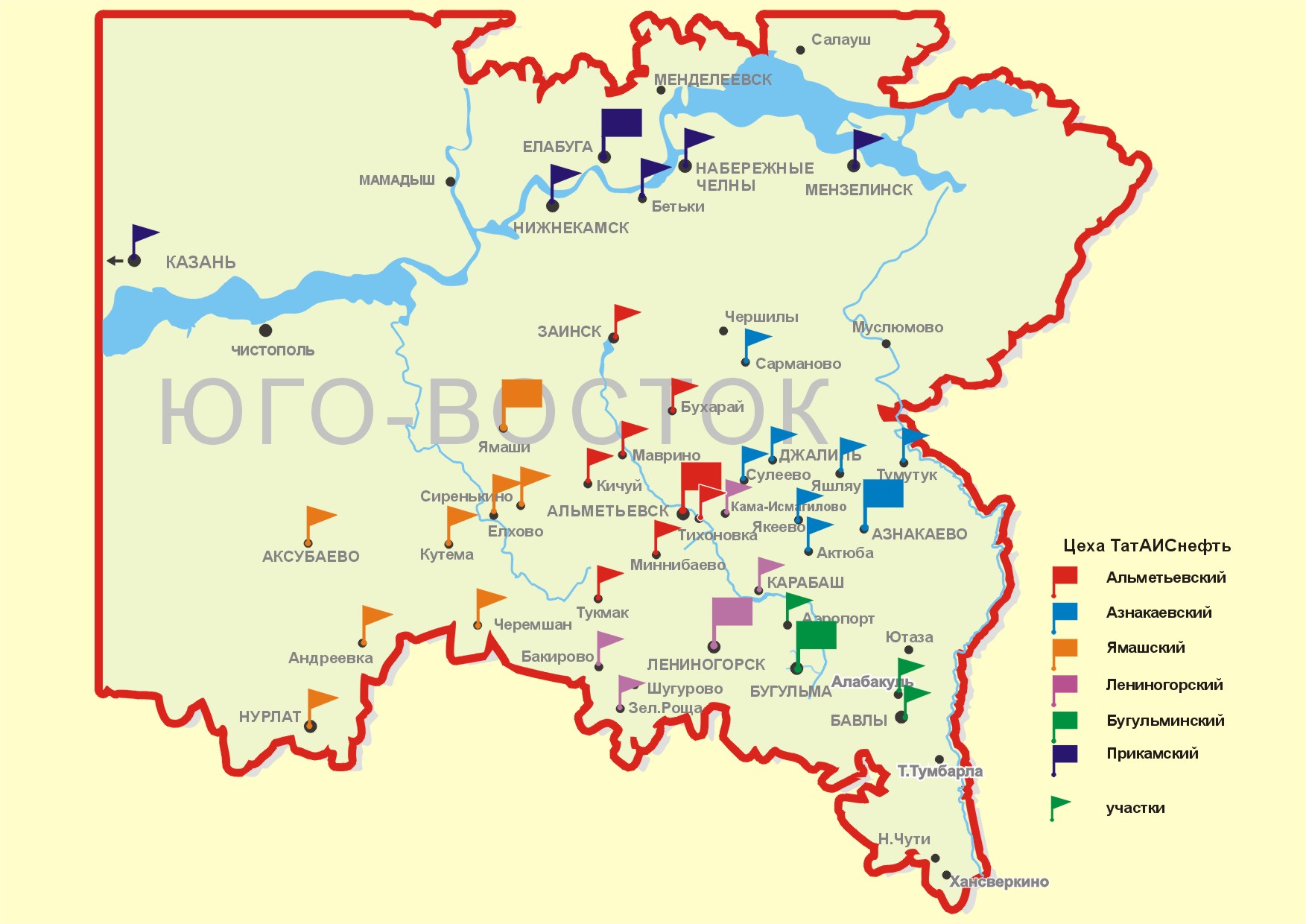 Управление «ТатАИСнефть» территориально расположено на юго-востоке Республики Татарстан, имеет в своем составе 8 эксплуатационных и 7 вспомогательных цехов и участков. Основное назначение управления – обеспечение предприятий ОАО «Татнефть» качественной современной связью. Управление «ТатАИСнефть» предоставляет услуги в 3-х основных направлениях: