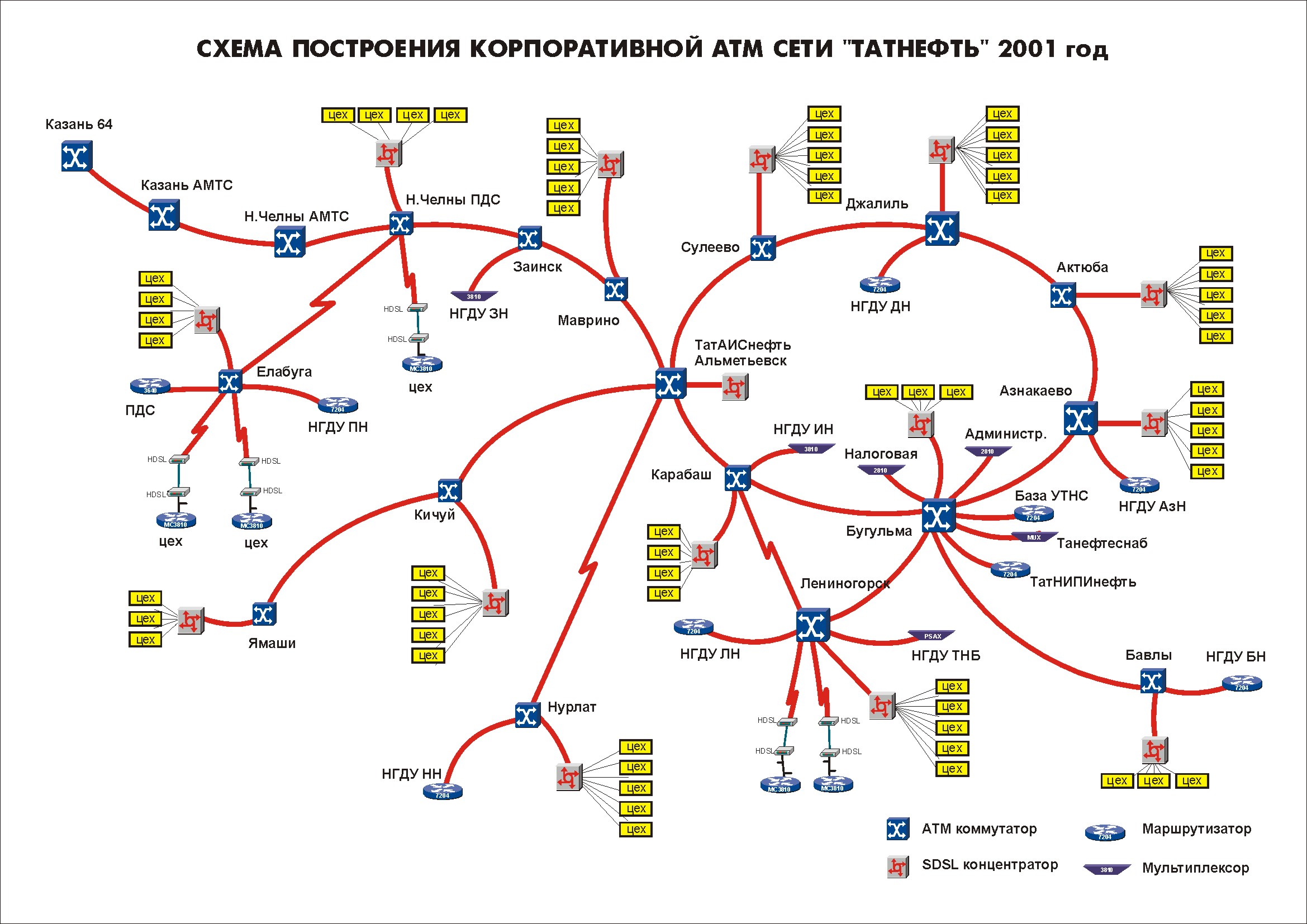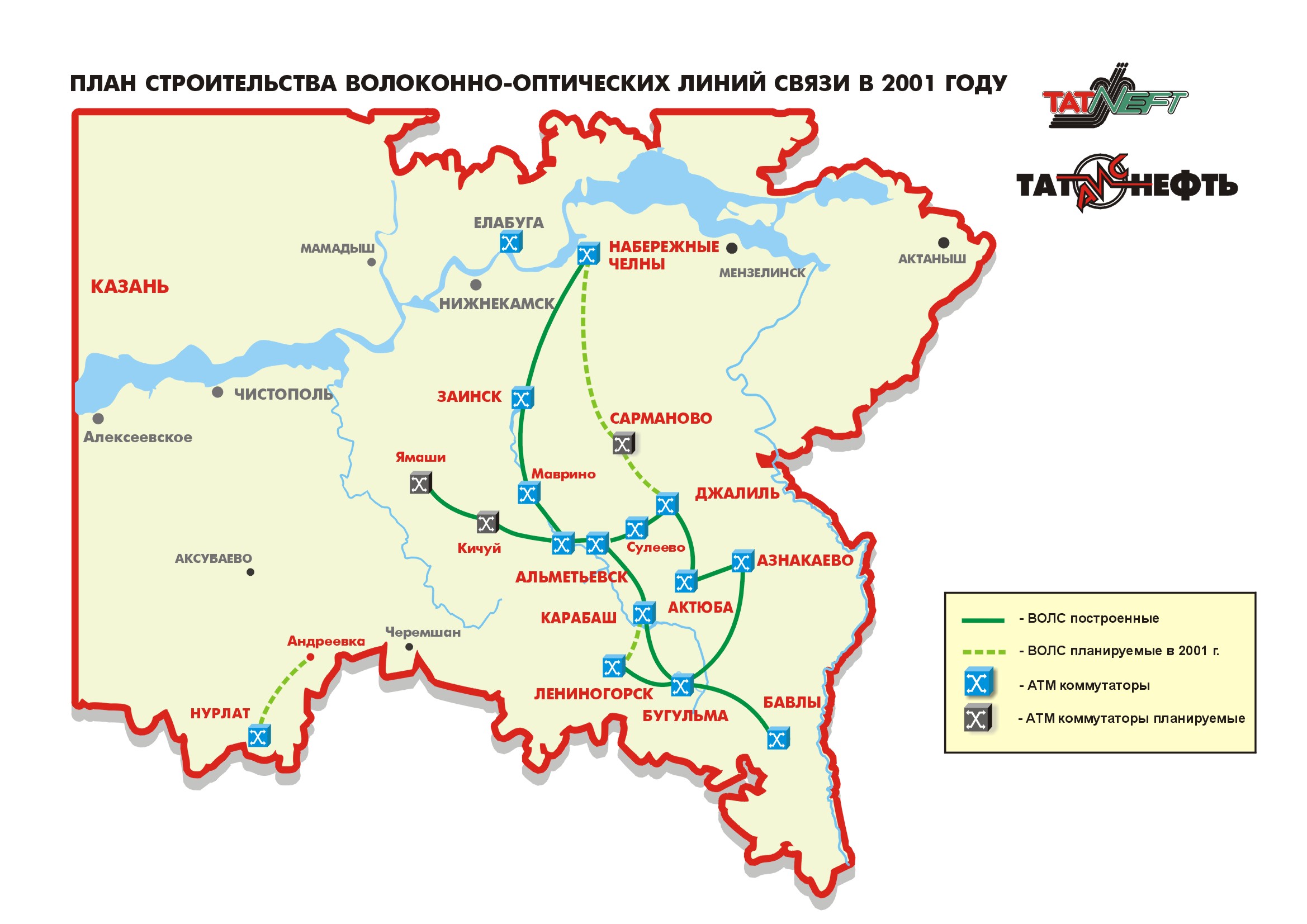 В 2000 году управление «ТатАИСнефть» продолжило работы по созданию транспортных цифровых магистралей, на которых строится корпоративная и АТМ сеть ОАО «Татнефть». Были построены волоконно-оптические линии связи в направлении Альметьевск-Кичуй-Ямаши, Н.Челны-Сарманово, велось строительство ВОЛС в городах Альметьевск, Лениногорск, Нурлат, Бугульма, Елабуга, Азнакаево, Бавлы. Выполнен монтаж АТМ оборудования в узлах населенных пунктов Альметьевск, Джалиль, Бугульма, Азнакаево, Заинск, Н.Челны, Маврино, Елабуга, Кичуй, Ямаши, Нурлат, Сулеево, Актюба, Карабаш, Лениногорск, Бавлы, что позволяет НГДУ ОАО «Татнефть» использовать высокочастотные цифровые каналы связи.