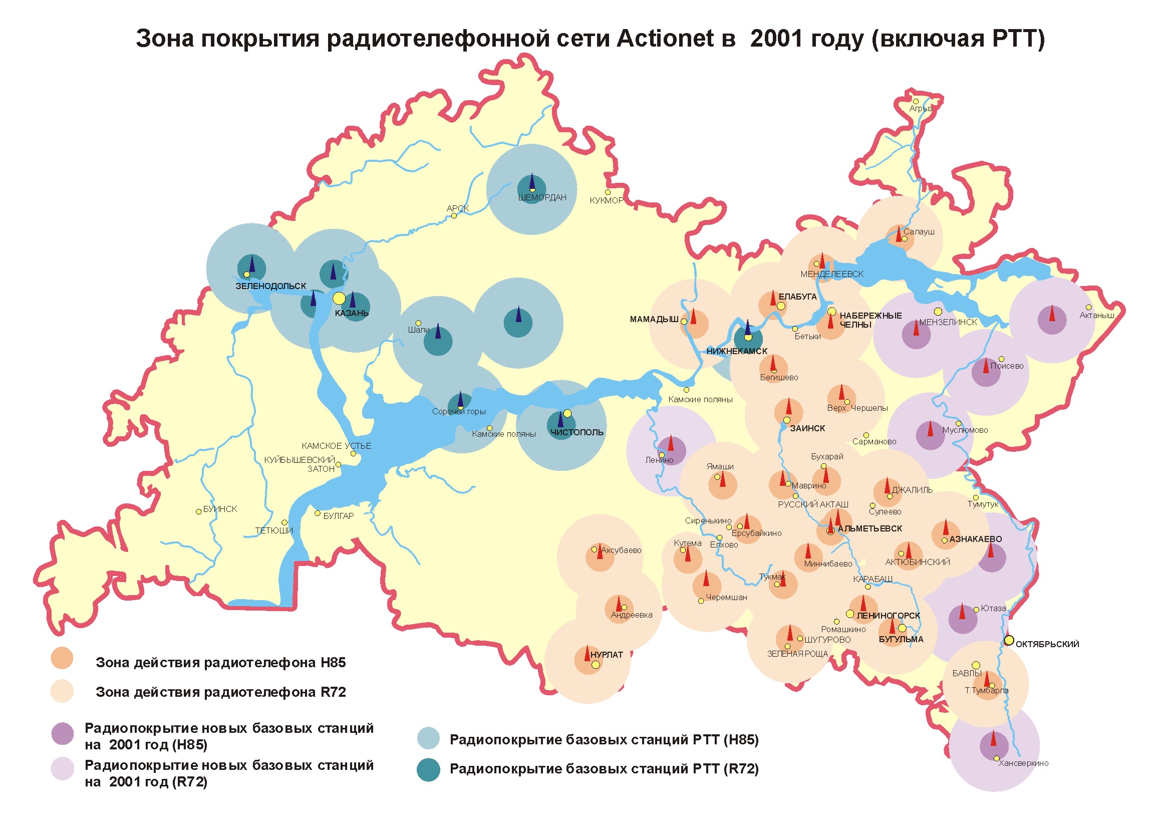 Продолжилось строительство II этапа радиотелефонной системы связи «Actionet». В рамках этого построены и сданы в эксплуатацию башни высотой 75 и 110 м в населенных пунктах Н.Челны, Бавлы, Актюба, Чершалы, Черемшан, Новошешминск, Сиренькино, Ютазы. Радиопокрытие территорий присутствия подразделений ОАО «Татнефть» обеспечивается 24 базовыми станциями, обслуживающими 3 022 радиотелефона.
