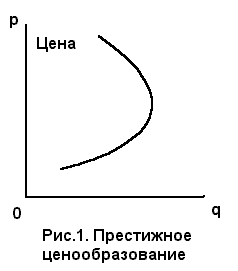 При цьому враховується психологічний і соціальний вплив ціни на певну категорію споживачів, що звичайно володіє істотним достатком. У цих випадках люди часто судять про якість товару або послуги по рівню ціни. «Дешевий» товар асоціюється з неповноцінністю її якості, а «дорогий» товар стає синонімом його високої якості. У деяких шарах суспільства купувати «дешевий» товар взагалі вважається ознакою поганого тону. Графік попиту на товар, схильний до престижного ціноутворення, істотно відрізняється від графіка попиту на звичайний товар. Престижне ціноутворення характеризується до певного моменту позитивним нахилом графіка попиту на товар або послугу (мал. 1). З підвищенням ціни попит на товар до деякого моменту зростає. По досягненні деякого моменту підвищення ціни буде приводити до скорочення попиту.