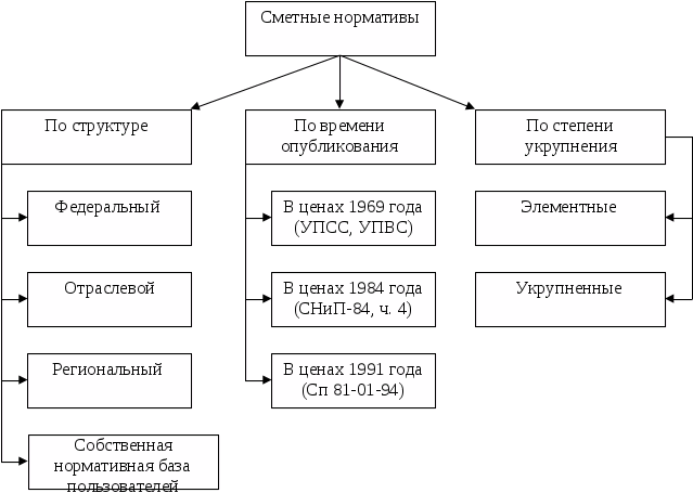 Рис. 1. Схема классификации сметных нормативов по структуре, времени опубликования и степени укрупнения
