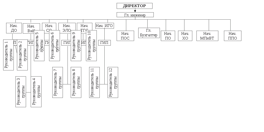 Схема организационной структуры управления отражает статическое положение подразделений и должностей и характер связи между ними.