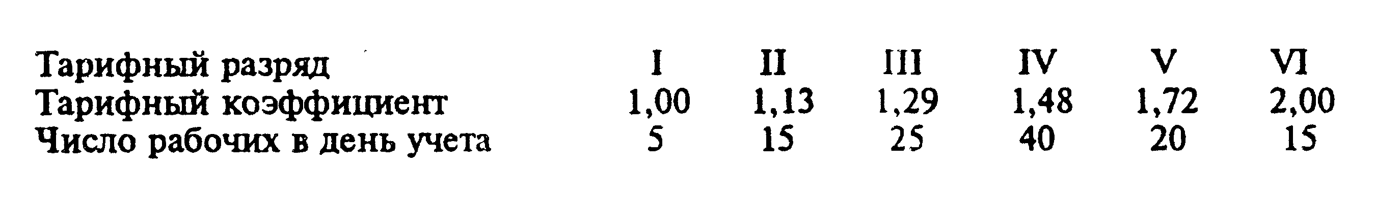 Как видно из приведенных результатов, оценка среднего уровня квалификации, исходя из данных о распределении рабочих по разрядам, не достигает IV разряда, в то время как, исходя из данных о соответствующих каждому разряду тарифных коэффициентов средний оказывается практически соответствующим IV разряду. Причина такого расхождения объясняется тем, что исходя из разрядов (рангов) рабочий VI разряда оказывается как бы в шесть раз квалифицированнее рабочего первого разряда, если же исходить из тарифных коэффициентов, то различие составляет только два раза.