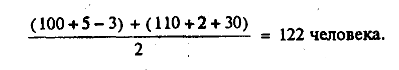 Отметим далее, что по приведенным выше данным можно определить среднюю списочную численность, а также по выделенным в таблице группам персонала (не следует только забывать, что данные по совместителям следует применять с коэффициентом 0,5). Тогда после деления соответствующих показателей итоговой строки табл.2 на 30 (число календарных дней в апреле) получим среднее списочное число лиц, состоящих в списках, 119 человек, совместителей — 3 человека, работавших по договорам подряда — 25, лиц, подлежащих исключению из среднего списочного числа, хотя и состоящих в списках, — 2 человека, что в сумме и дает 145 человек.