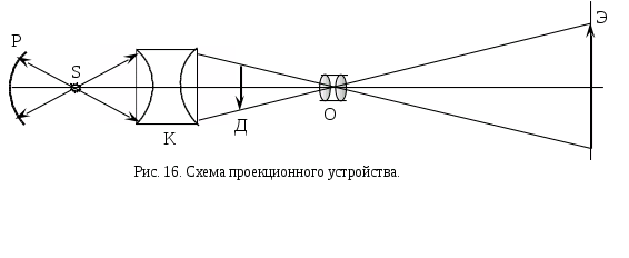 Для показа зрителям на экране увеличенного изображения рисунков, фотоснимков или чертежей применяют проекционный аппарат. Рисунок на стекле или на прозрачной пленке называют диапозитивом, а сам аппарат , предназначенный для показа таких рисунков, - диаскопом. Если аппарат предназначен для показа непрозрачных картин и чертежей , то его называют эпископом. Аппарат , предназначенный для обоих случаев называется эпидиаскопом.
