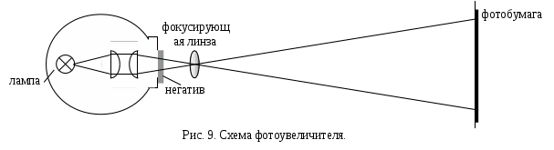 объективе О, который уже направляет их на экран Э, где получается изображение диапозитива Д. Сам диапозитив помещается между главным фокусом объектива и точкой, находящейся на расстоянии 2F от объектива. Резкость изображения на экране достигается перемещением объектива, которое часто называется наводкой на фокус. [ 2 ]