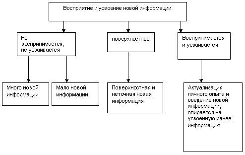 Степень интереса к передаваемой информации определяется тем, в какой мере эта информация удовлетворяет запросы ее конкретного потребителя – ученика. Поэтому одна из основных забот учителя – нахождение оптимального отношения известного и нового в сообщаемой информации.