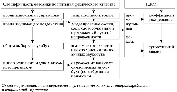 На рисунке представлена схема моделирования универсального суггестивного текста гетеровоздействия, по которой и осуществлена описываемая процедура в связи с целью и задачами исследования.