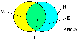где l подмножество точек в пересечении подмножеств m и k ; n - все множество точек.