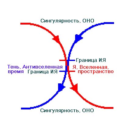 До момента Большого взрыва объединяющиеся субъекты-антиподы существовали в пространстве-времени своего объекта. При зачатии нового ИЯ возникло и неразрывно связанное с ним его пространство-время. Причём для симметричных частей нового ИЯ пространство одной половинки является временем относительно другой половинки. И наоборот. Но исследование этой темы не входит в задачу данной работы и достаточно полно произведено в опубликованной по вышеуказанной ссылке ТСП. Кроме того, один из белорусских профессоров долго смеялся, когда автор назвал магнитное поле синонимом времени, а электрическое – пространства. Мэтр просто не подозревал, что живёт сразу в двух вселенных. И считал, что Фрейд – это русская гончая его соседа-охотника. Но сам автор считает открытие бессознательного в психике человека событием, равным по значимости СТО А. Эйнштейна.