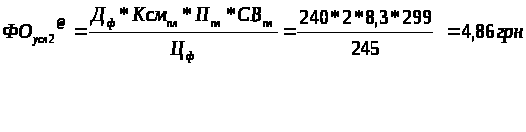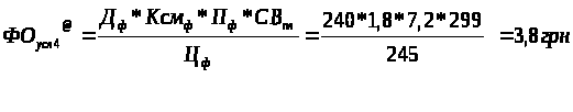 Далее установим, какой была бы фондоотдача при фактической структуре оборудования и фактическом количестве отработанных дней, но при плановой величине остальных факторов: