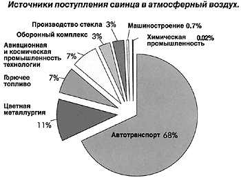 Суммарное поступление свинца в атмосферу от автотранспорта на территории России в 1995 г. оценивается величиной около 4 тыс.т. Максимальная нагрузка свинца от выбросов автотранспорта приходится на Московскую и Самарскую области. За ними следуют Калужская, Нижегородская, Владимирская области и другие субъекты Федерации, расположенные в центральной части ЕТР и Северного Кавказа.