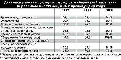 Оказалось, что восстановление доходов населения происходило в 1999 г. гораздо более низкими темами, чем это предполагалось в прогнозных расчетах. Однако во втором полугодии данный процесс приобрел устойчивую динамику.