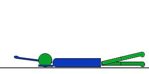 Лечь на живот; руки и ноги выпрямлены и параллельны друг другу.