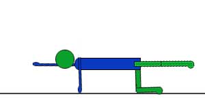 Одновременно приподнять от пола обе руки и обе ноги и удерживать в таком положении несколько секунд.