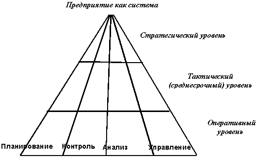 Рис. 1 Уровни управления предприятием и основные функции менеджмента