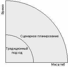 Рис.1 Отношение между традиционным стратегическим планированием и сценарным подходом.