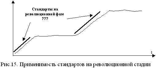 Интереснейшим вопросом, на наш взгляд, является задача применимости стандартов менеджмента на революционной фазе. По сути, данная проблема сводится к вопросу о возможности управления революционной стадией с помощью стандартов и стандартизации менеджмента (Рис.15).