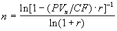 Соответственно если неизвестной величиной является n, она определяется по формуле: