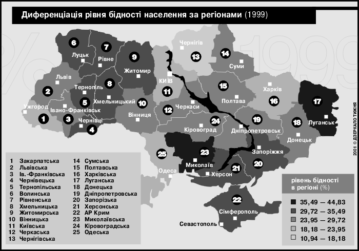 Україна. Національний звіт з людського розвідку 2001. Сила суспільної взаємодії/ Програма розвідку ООН. - Київ, 2002. - З. 99.)