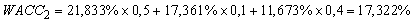 На втором интервале произойдет переход от использования нераспределенной прибыли к первой эмиссии обыкновенных акций. Собственный капитал теперь будет представлен акционерным капиталом, цена которого составит 21,833%. Остальные слагаемые средней цены остаются неизменными.