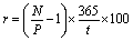 d = ln (10 / 8,2) / (40 / 365) ≈ 203,6%