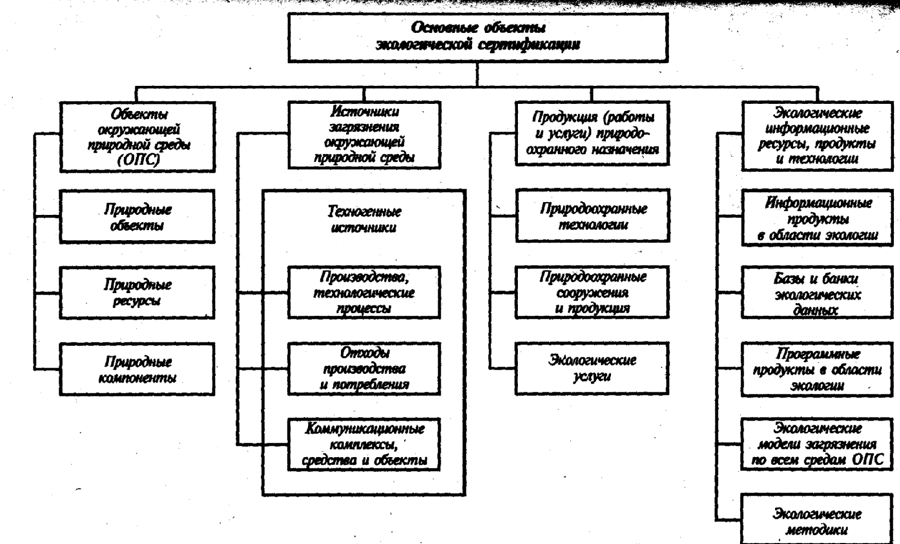 Данные оценок, представляемые разными сторонами, как правило, практически несопоставимы. Цена ошибок может быть слишком высокой, что говорит в пользу сертификации как объективного и независимого способа оценки соответствия. Для этого необходима более четкая классификация объектов экологической сертификации, пример которой представлен на рис.1