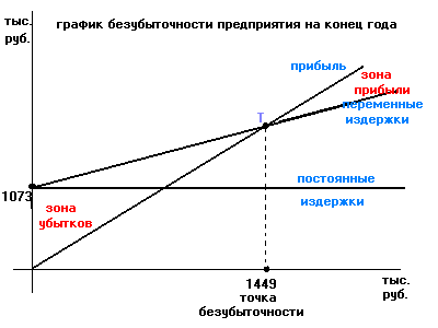 Рисунок 4 График безубыточности предприятия на конец 2004 года.