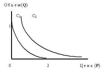 Рисунок 3 Кривые спроса при разных состояниях дохода С1 и С2