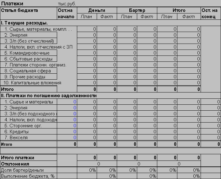 Следовательно, в отчете о движении платежных средств должно быть две колонки: денежные средства и бартер. Различные платежные суррогаты: векселя, зачеты, долги следует приводить к денежным средствам (посредством рыночного дисконта), в том случае, если их собираются продать. Если планируется использовать эти суррогаты для оплаты материалов, или услуг их следует отражать, как бартер.