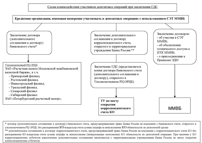 Кредитной организации, имеющей намерение участвовать в депозитных операциях с использованием СЭТ ММВБ, следует заключить следующие договоры: