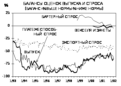 Производные переменные D(X*t, X*t-1) и Ф(Xt, X*t-1) обычно определяются для одних и тех же показателей (Konig et all, 1981). Вместе с тем в некоторых случаях может представлять интерес расчет Ф(Xt, X*t-1) для двух разных показателей, отклонение которых друг от друга также интересно использовать. Для переходных экономик такой парой является, несомненно, выпуск и спрос (платежеспособный или бартерный). Для этой пары показателей целесообразно рассмотреть и отклонение фактических изменений в одном опросе.