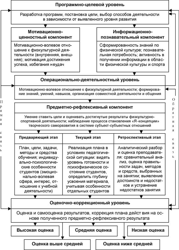Представленная система-модель акцентирует внимание на наличии обратной связи между программно -целевым, операционально-деятельностным и оценочно-коррекционным уровнями.