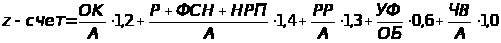 Обобщающим показателем финансового состояния предприятия, характеризующим степень «близости» предприятия к банкротству, является показатель «z-счета» Альтмана. Этот показатель рассчитывается по формуле: