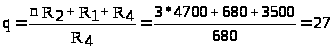 Примем сопротивления R>4>=680Ом и R>1>=3.5кОм. Тогда для сохранения исходного смещения на базах регулируемых транзисторов найдём силу тока I>>>п1>, протекающего через сопротивление R>4>: